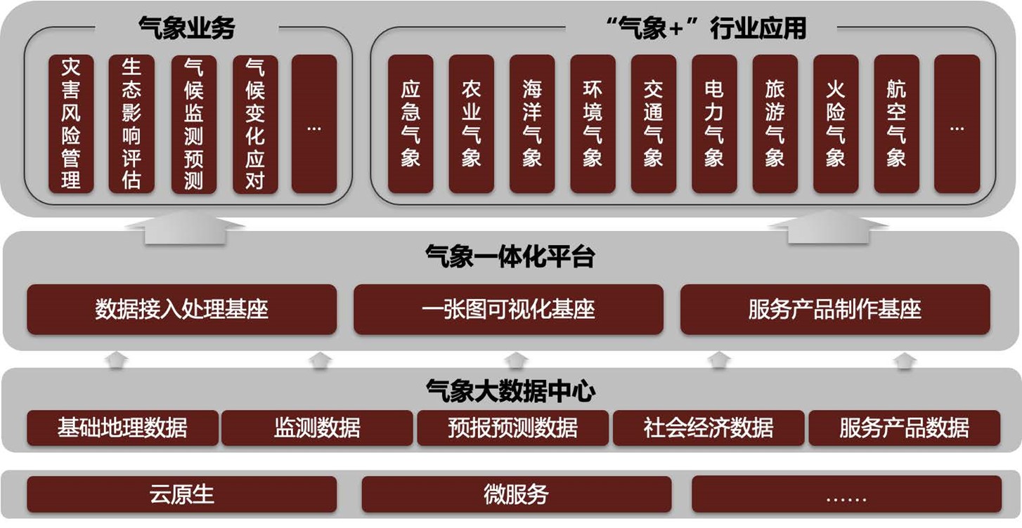 智慧气象解决方案通过气象灾害一体化平台在云原生、微服务等技术基础上实现多种气象业务的统一集成,包括气象大数据中心、数据接入处理基座、一张图可视化基座与服务产品制作基座,提供系统界面搭建、服务接口页面构建等多种扩展方式,实现气象灾害风险管理、生态气象服务等全业务支撑,创新“气象+”行业应用的气象服务模式,赋能应急、农业、电力、交通等行业发展。